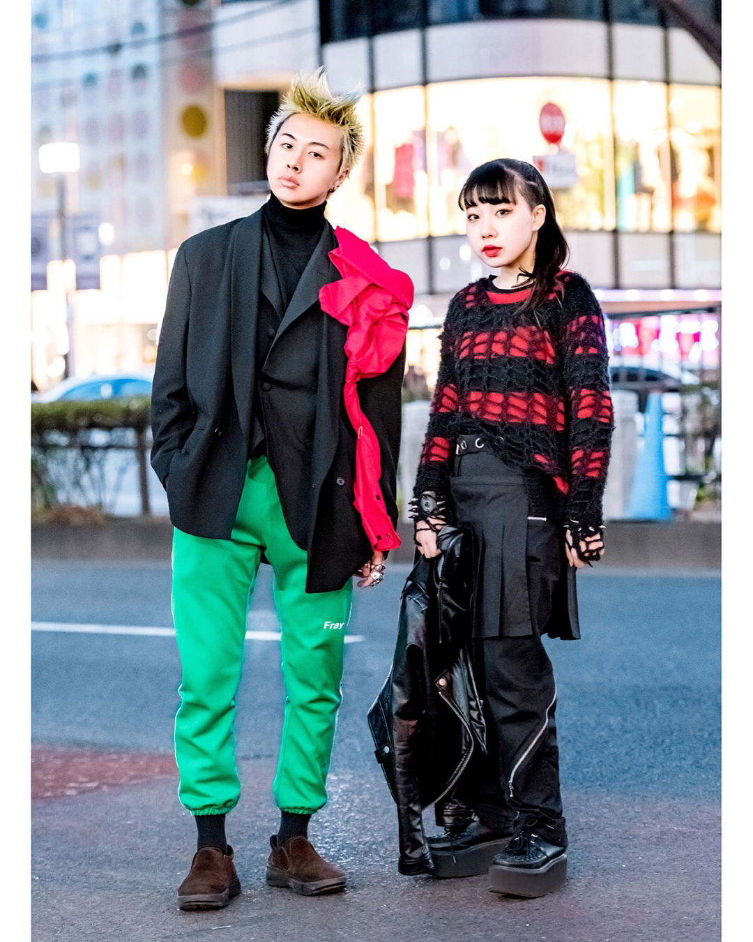 Japanese students Raw (@lifecoming1) and Beni (@beni9s) on the street in Harajuku wearing handmade and remake items along with fashion from Dog Harajuku, Comme des Garcons, Fresh Anti Youth, Last Virgin, HumanExperiments, and New York Joe. Also check the link on our Instagram Profile to watch English-subtitled interviews with both Raw and Beni!