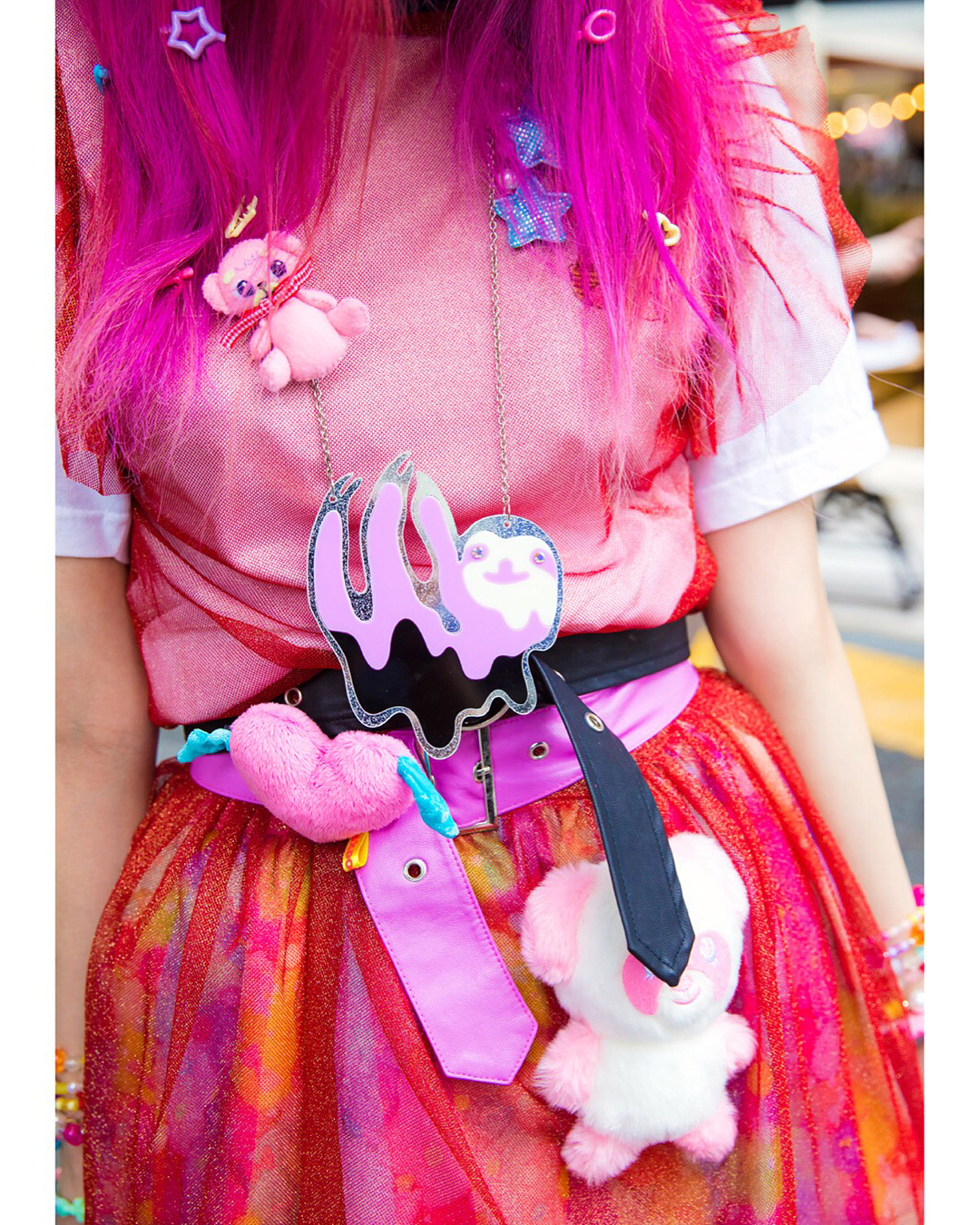 @Sakura_Pluto on the street in Harajuku wearing a colorful kawaii style with fashion by MIYA NISHIYAMA, WC x Esther Kim, 6%DOKIDOKI, WEGO, Gemme, Sakura Pop Candy, Candy Stripper, Bubbles Harajuku, and Spinns.