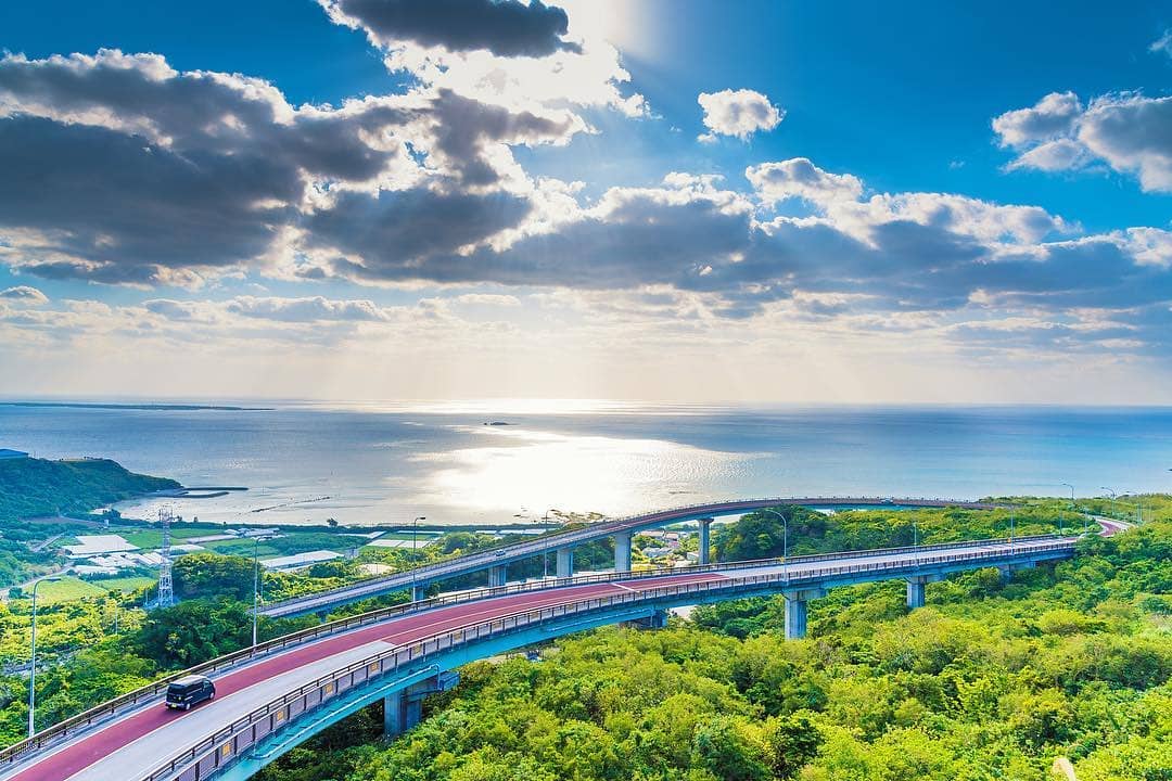 straight toward the blue #Okinawansea, but then there comes a sharp hairpin curve. The