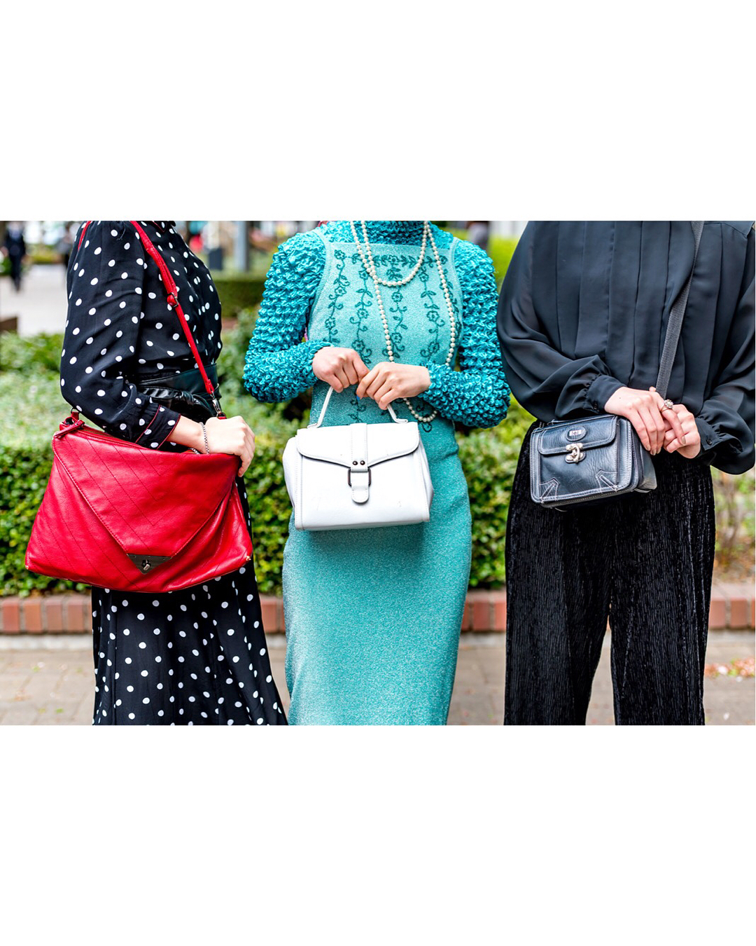 Japanese students Kanon (@strong_chama), Marincyorin (@marincyorin), and Mio (@vol.30) on the street in Tokyo wearing mostly vintage fashion with items from Funktique, Emoda Zara, Tiffany, and Cartier.