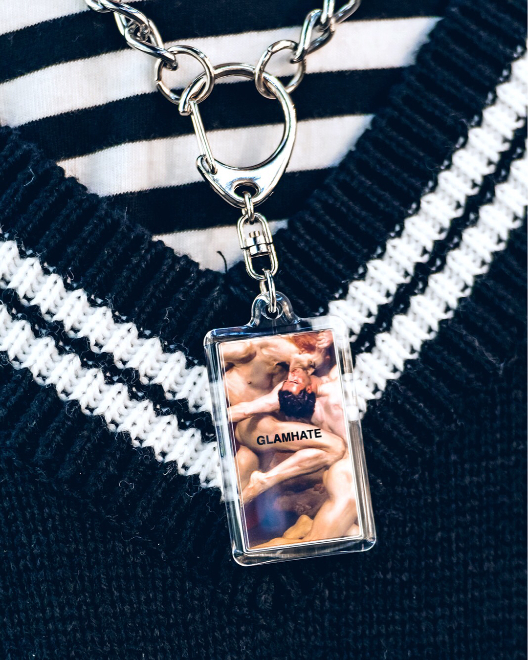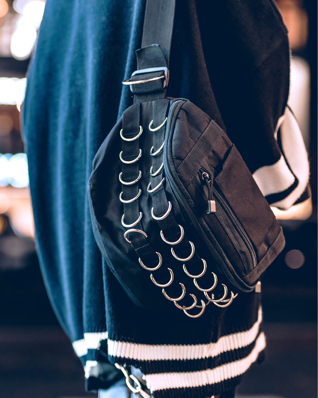 Cham (@daaaaaaicham) on the street in Harajuku at night wearing a v-neck sweater with extra-long sleeves from Qlozet, Growing Pains leather pants, Nike sneakers, a Glam Hate necklace, and a bag by Elephant Tribal Fabrics.