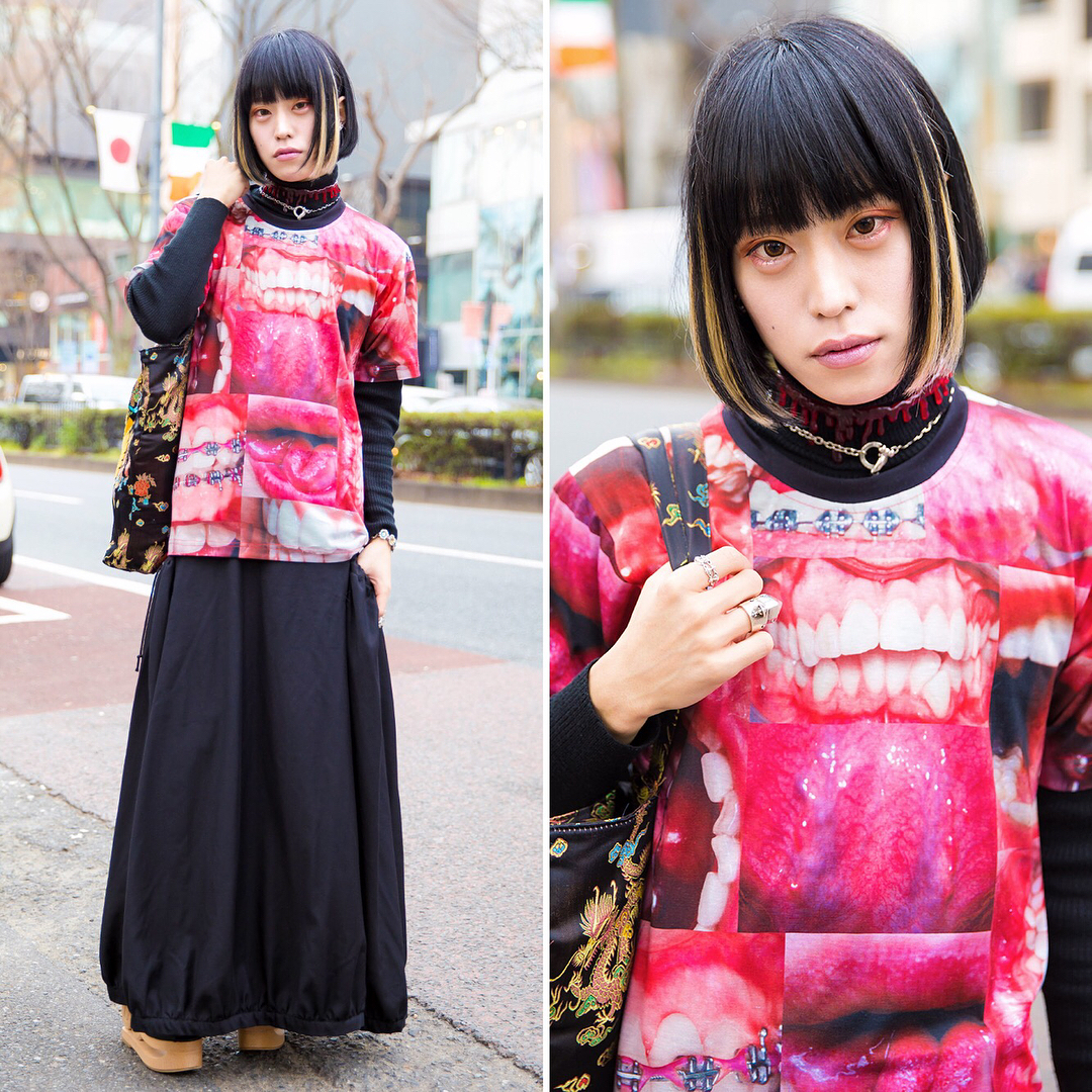 @Tokyo Fashion: @Uri_Hanazono on the street in Harajuku. He is wearing a teeth shirt from Minera…
