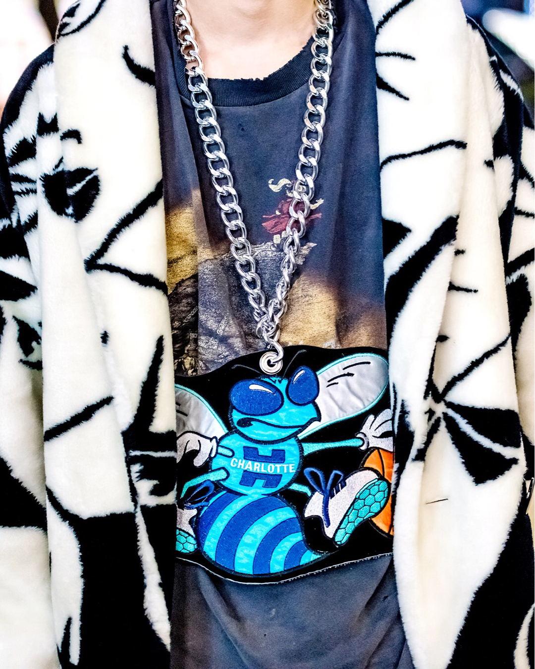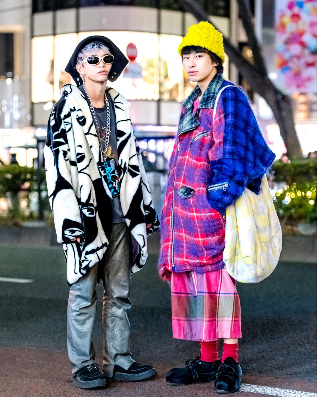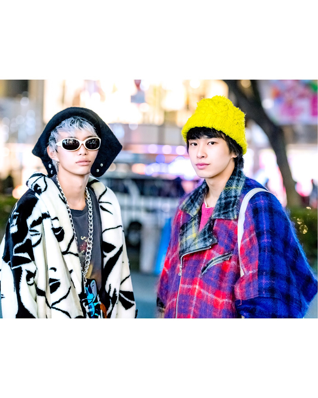 Kyo (@kyo_hama1126) and Yuma (@kitazawayuma) on the street in Harajuku wearing vintage fashion along with items by Garb (Kyo’s giant hornet necklace), Hiro, Jieda, Carpe Diem, George Cox, and Donnybrook. They both name Dog Harajuku their favorite fashion boutique.