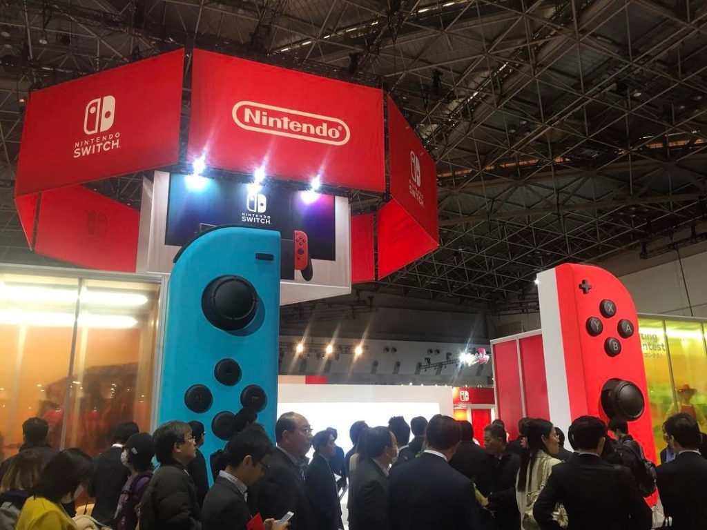 Giant Joy-Con controllers at the Nintendo Switch press preview event at Tokyo Big Sight. Today Nintendo revealed that its newest video game console will be released on March 3, 2017. (Daisuke Kikuchi photo) #Japan #Tokyo #Nintendo #NintendoSwitchPresentation #東京 #ニンテンドースイッチ #任天堂