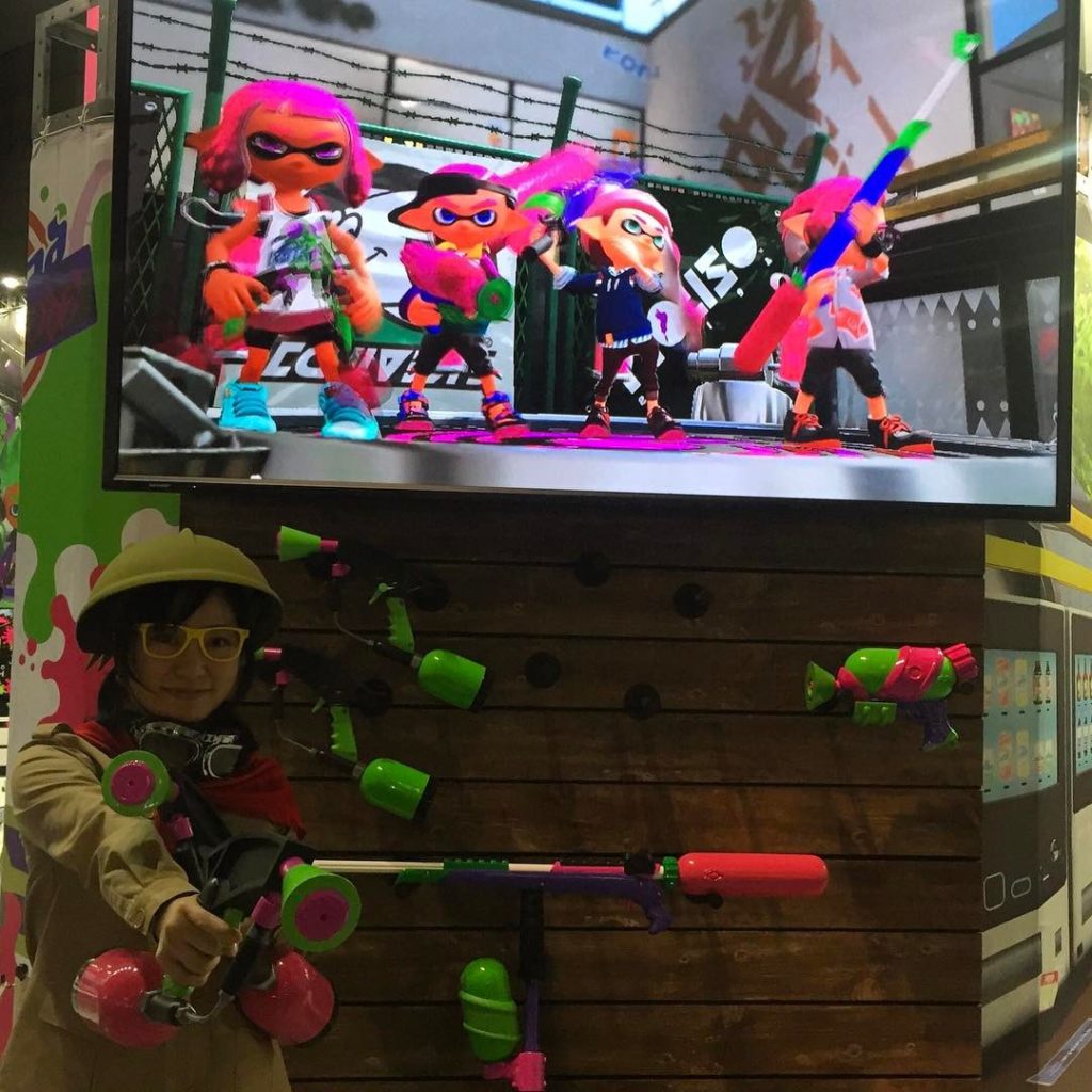 An Inkling in front of a booth for “Splatoon 2” during Nintendo’s Switch press preview event. The game will be released in the summer of 2017. (Daisuke Kikuchi photo) #Japan #Tokyo #Nintendo #NintendoSwitchPresentation #東京 #ニンテンドースイッチ #任天堂