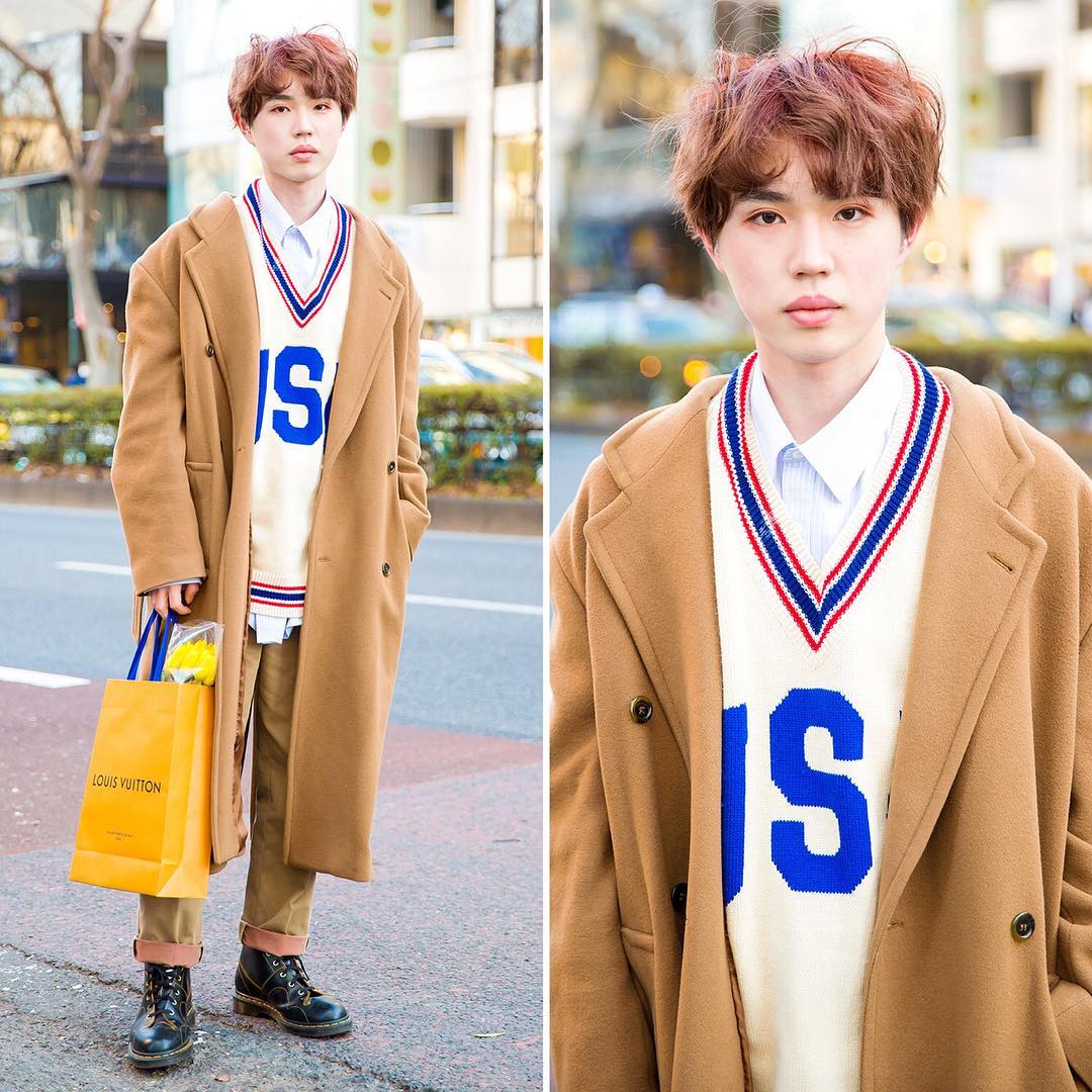 @Tokyo Fashion: 18-year-old Sohtaroh (@46_blanc) on the street in Harajuku wearing a tan coat ov…
