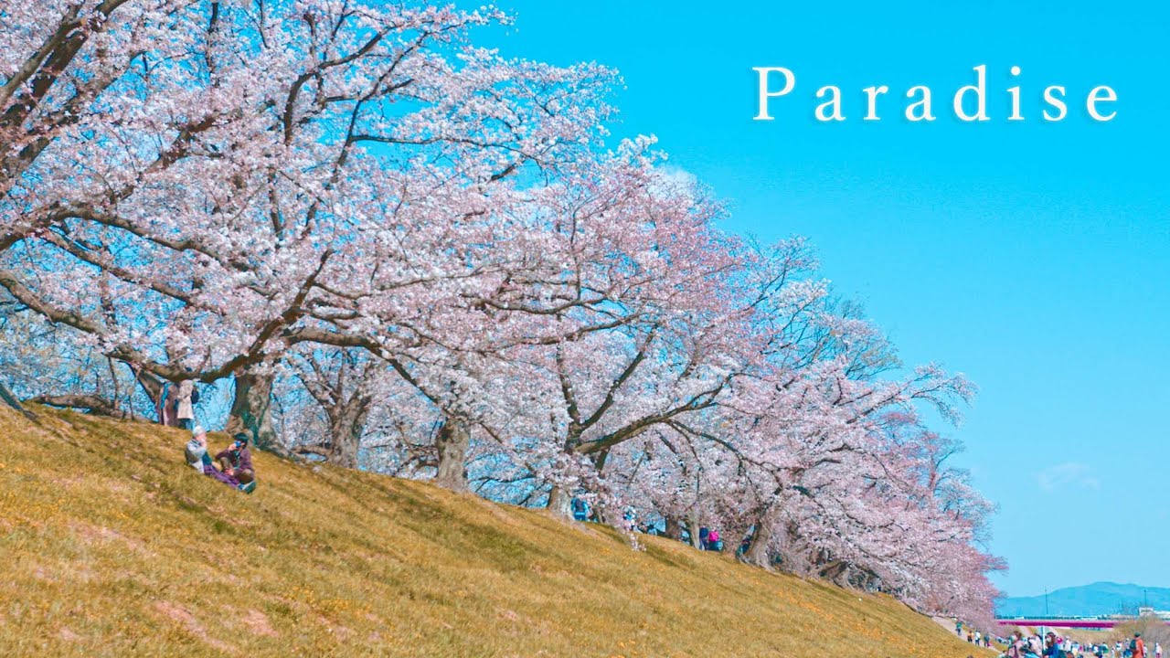 京都の八幡市にある非常に有名な桜の名所で、まさに桜天国といった場所でございます。