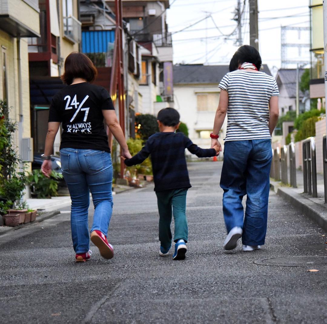 @The Japan Times: Mayu Aoyama and Hiromi Otsuki walk down a street in Tokyo with their son. Read a…