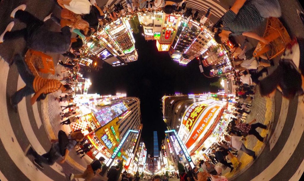 The neon-lit buildings of Tokyo’s Kabukicho get ringed by pedestrians in this head-spinning image. (Yoshiaki Miura photo) #Japan #Tokyo #Shinjuku #travel #instatravel #東京 #新宿 #kabukicho #rabbithole #theta