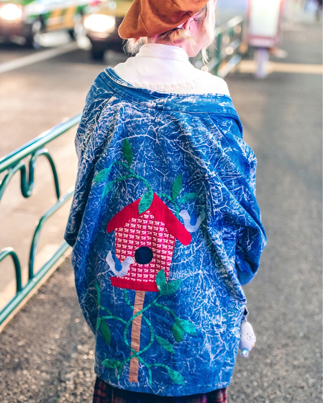 Chibimizu (@chibimizu0420) and Darukami (@daru_sk_0323) on the street in Harajuku wearing mostly vintage and handmade fashion along with Onitsuka Tiger and Dr. Martens. Chibimizu – who works at Amatunal Harajuku – is one of the cutest Harajuku girls ever, checking in at 144cm (4’8″) tall and preferring oversized fashion.