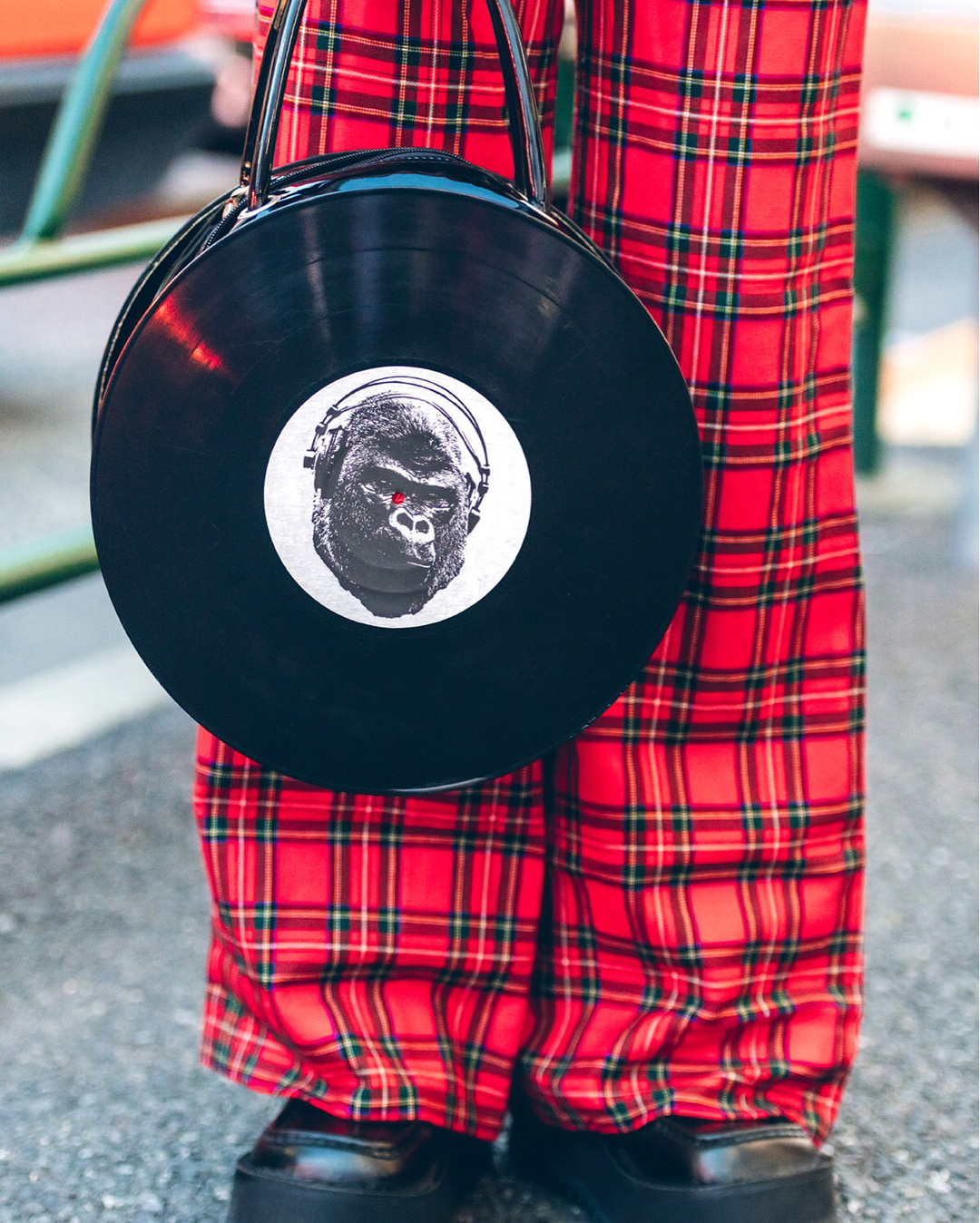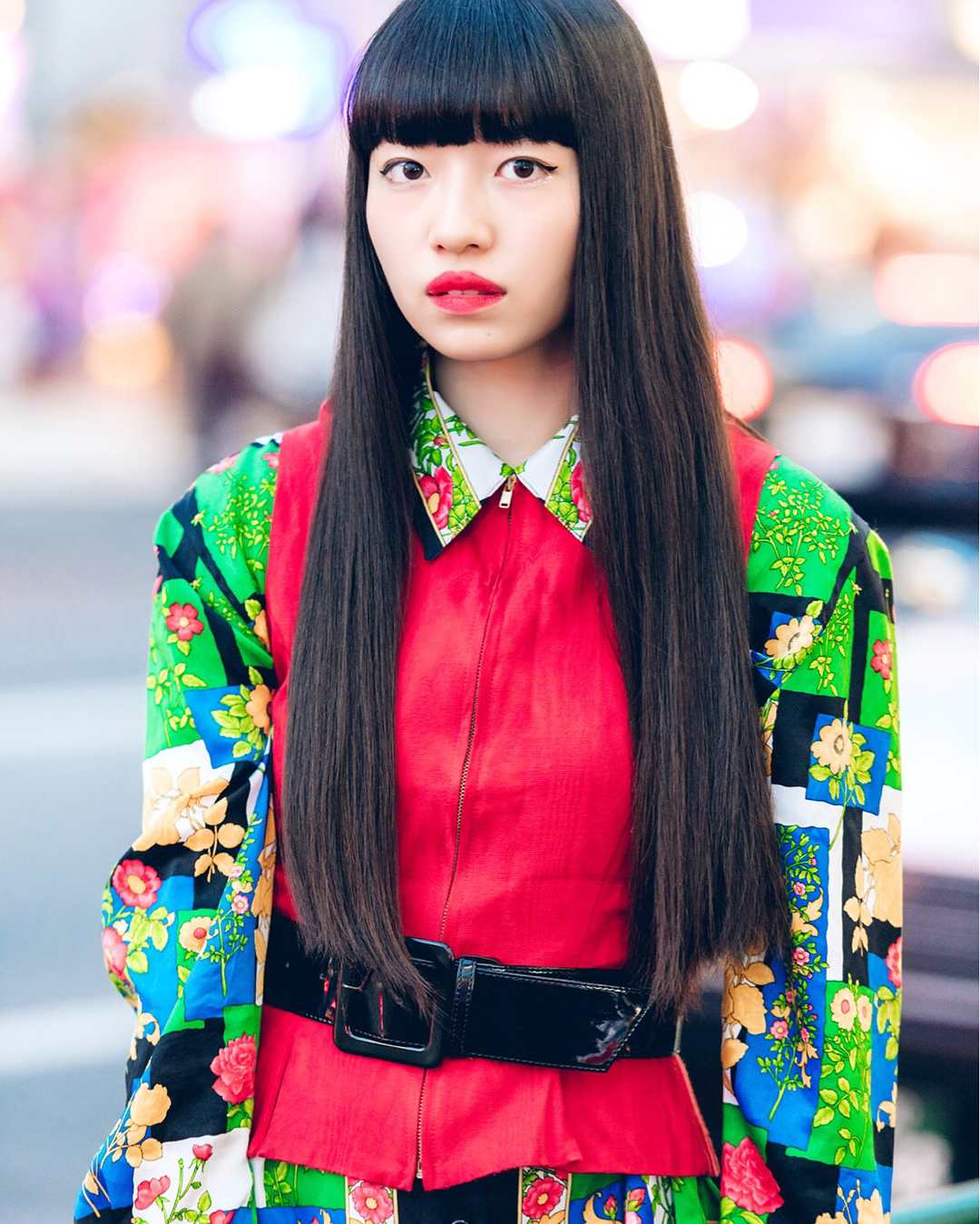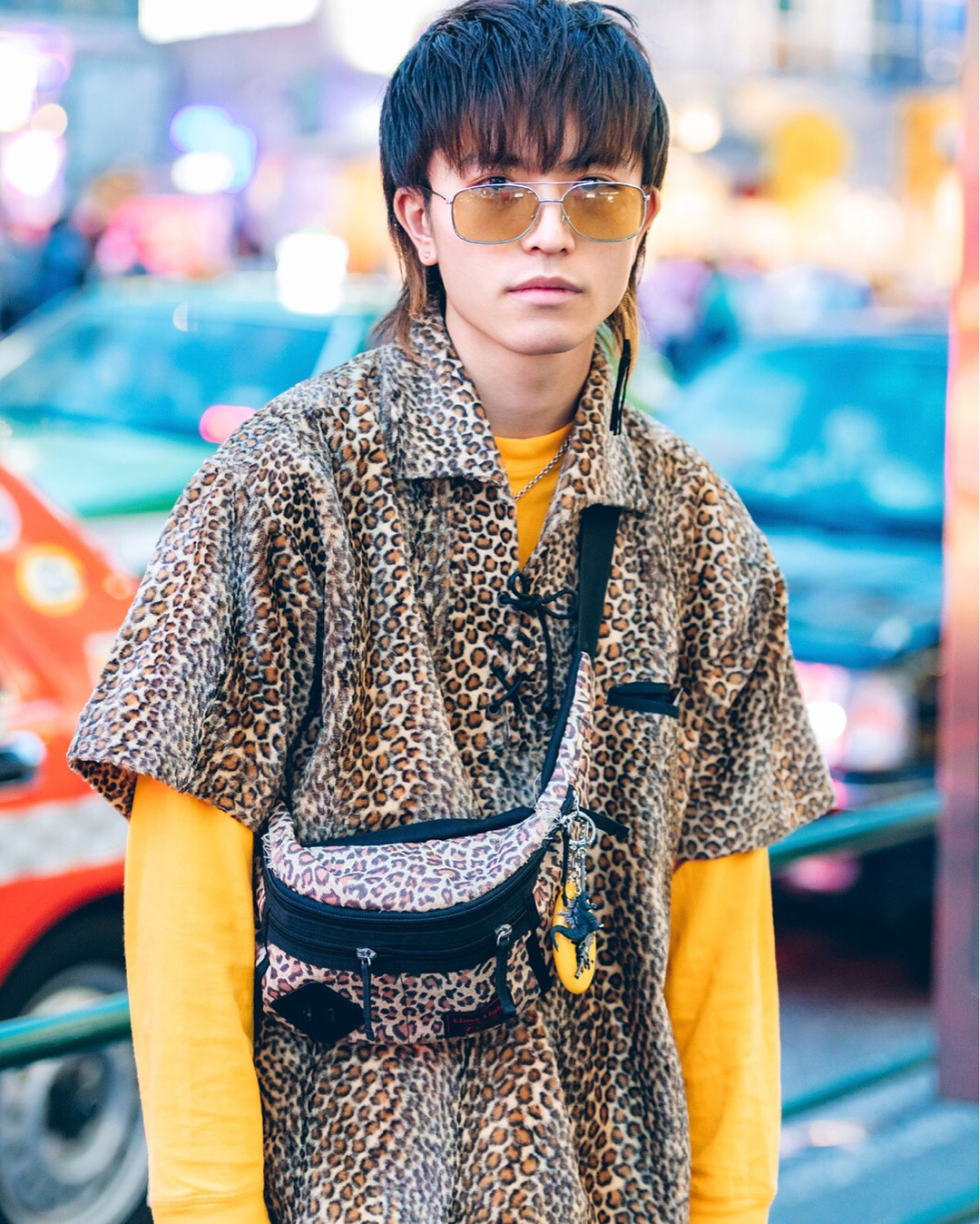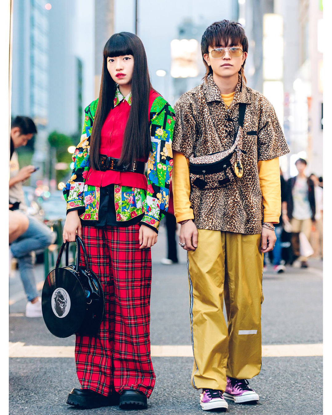 Japanese siblings Sakura (@sakura__ra_ra) and Yuki (@nakajipa) on the street in Harajuku wearing retro inspired looks with items from Tokyo vintage shops, Kinji, Bunkaya Zakkaten, Hysteric Glamour, Yosuke, Peppermint, Champion, and Converse.