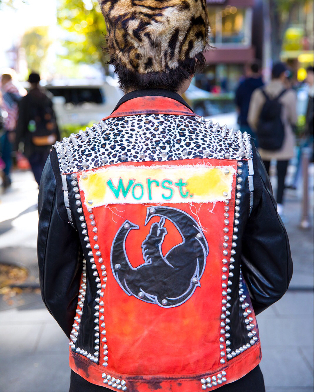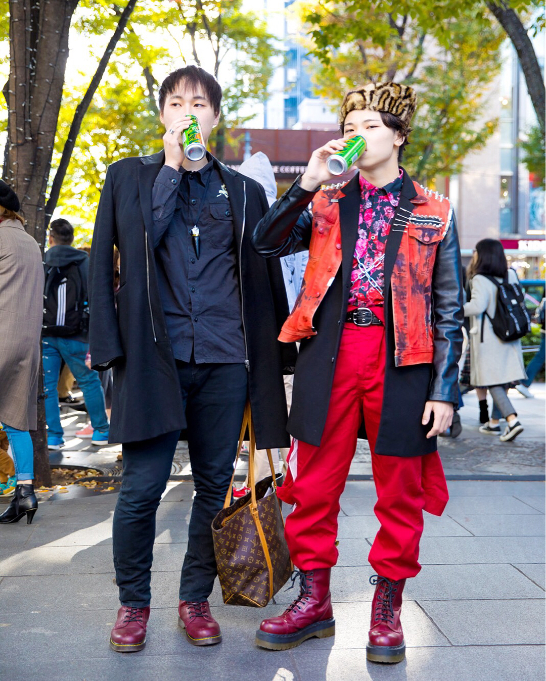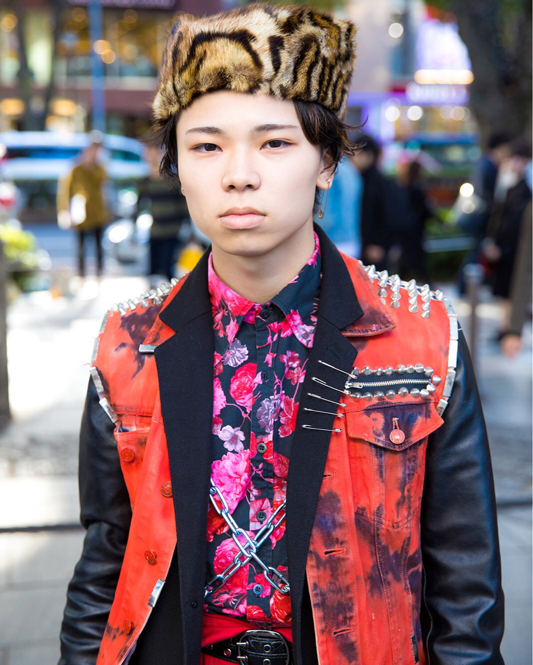 18-year-old Japanese students Ayumu (@alqyme) and Toranosuke (@trnsk98kt) on the street in Harajuku wearing remake fashion (the studded vest) along with items by Christian Louboutin, Michel Klein, Jackrose, Zara Men, Dr. Martens, Louis Vuitton, and Tiffany.