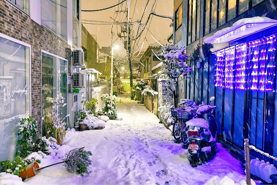 Harajuku during last week’s night-time Tokyo snow storm. How many places can you recognize? We were supposed to get snow again tonight in Tokyo, but mostly just got icy rain this time. It seemed like a good time to edit a few of our photos from last week’s real storm!