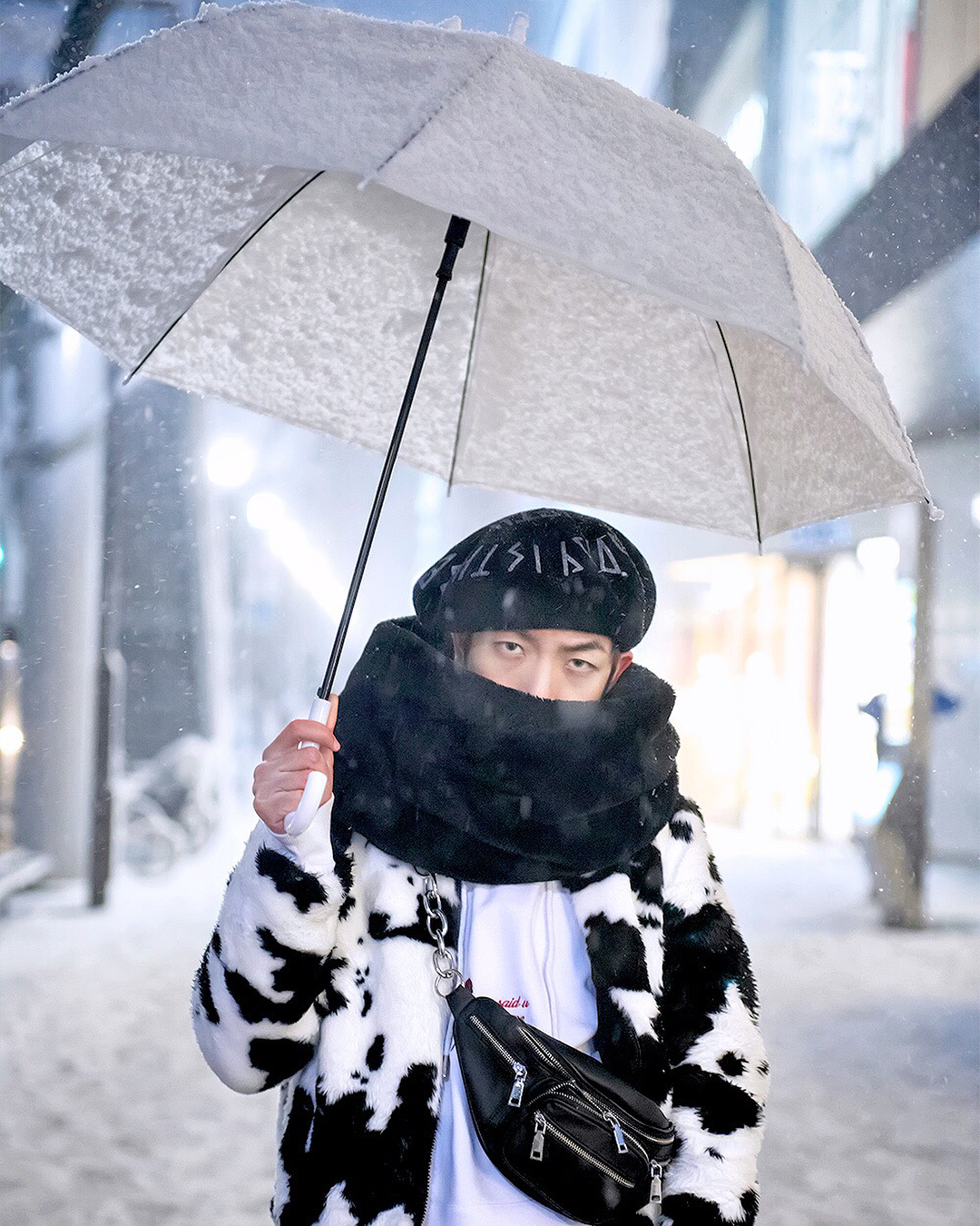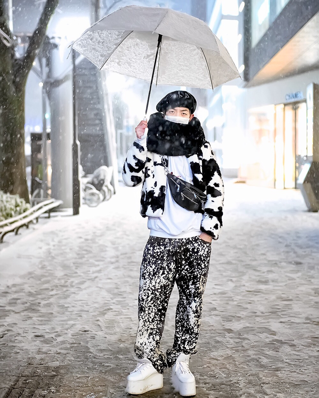 @Tokyo Fashion: Kenta (@kenta_0120) wearing a snow-themed Harajuku street style – in the middle …