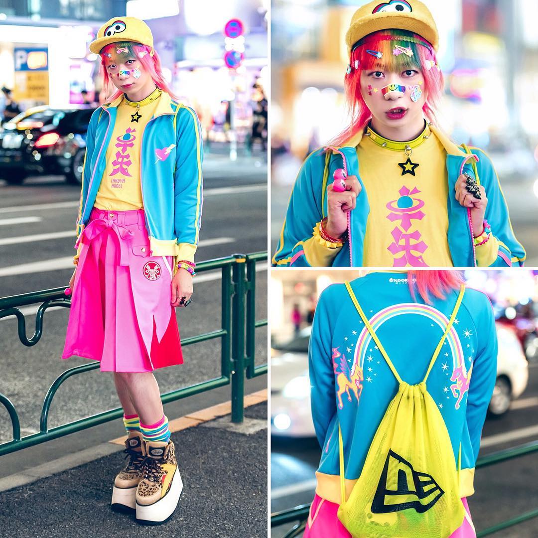 Harajuku Fashion Walk director @Junnyan69 on the street in Harajuku wearing colorful fashion from iconic Harajuku designers Takuya Angel and 6%DOKIDOKI along with Buffalo and New Era.