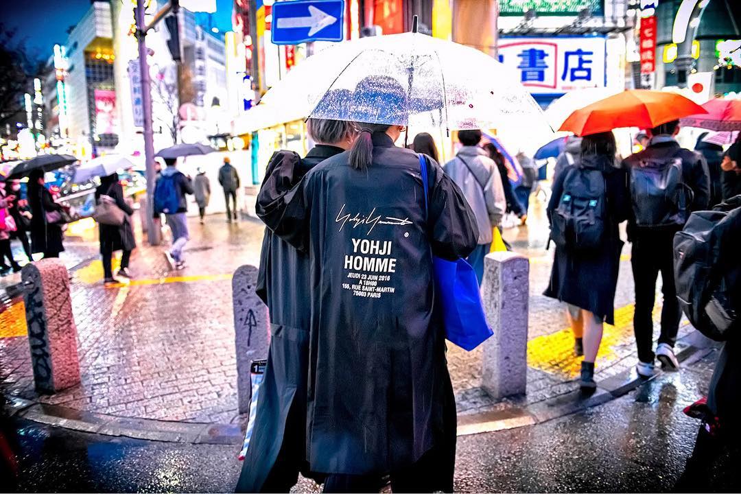 Yohji Yamamoto staff coat spotted on the rainy streets of Shibuya, Tokyo tonight. Tokyo FashionAloJapan.com