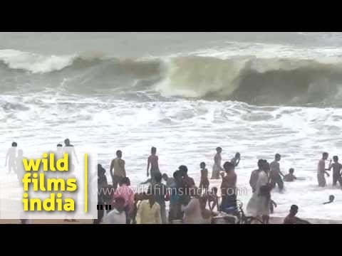 Given the lack of preparedness of India for natural disasters such as tsunamis, these tourists on a beach in Puri, Orissa, seem to be taking too many liberties with the rough and choppy sea, given that most of them can’t swim… It’s a given that there is no life guard in this unregulated situation.