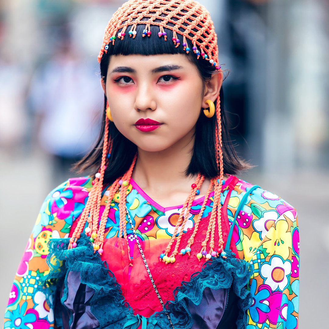 Japanese teens Moa (@more__gram), Hitomi (@zoiaura), Gawa (@gawagorhythm), and Asahi (@asahi5298) on the street in Harajuku wearing a mix of vintage and new fashion from the popular Tokyo boutiques Bubbles, Oh Pearl, Faith, Funktique, Spinns, and Kiloshop.