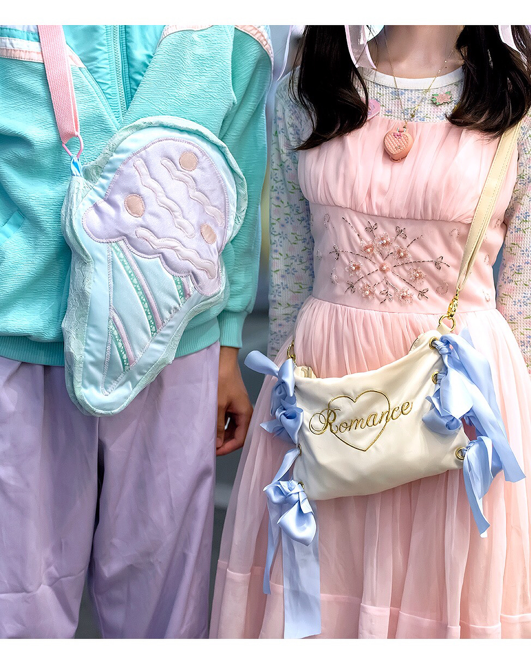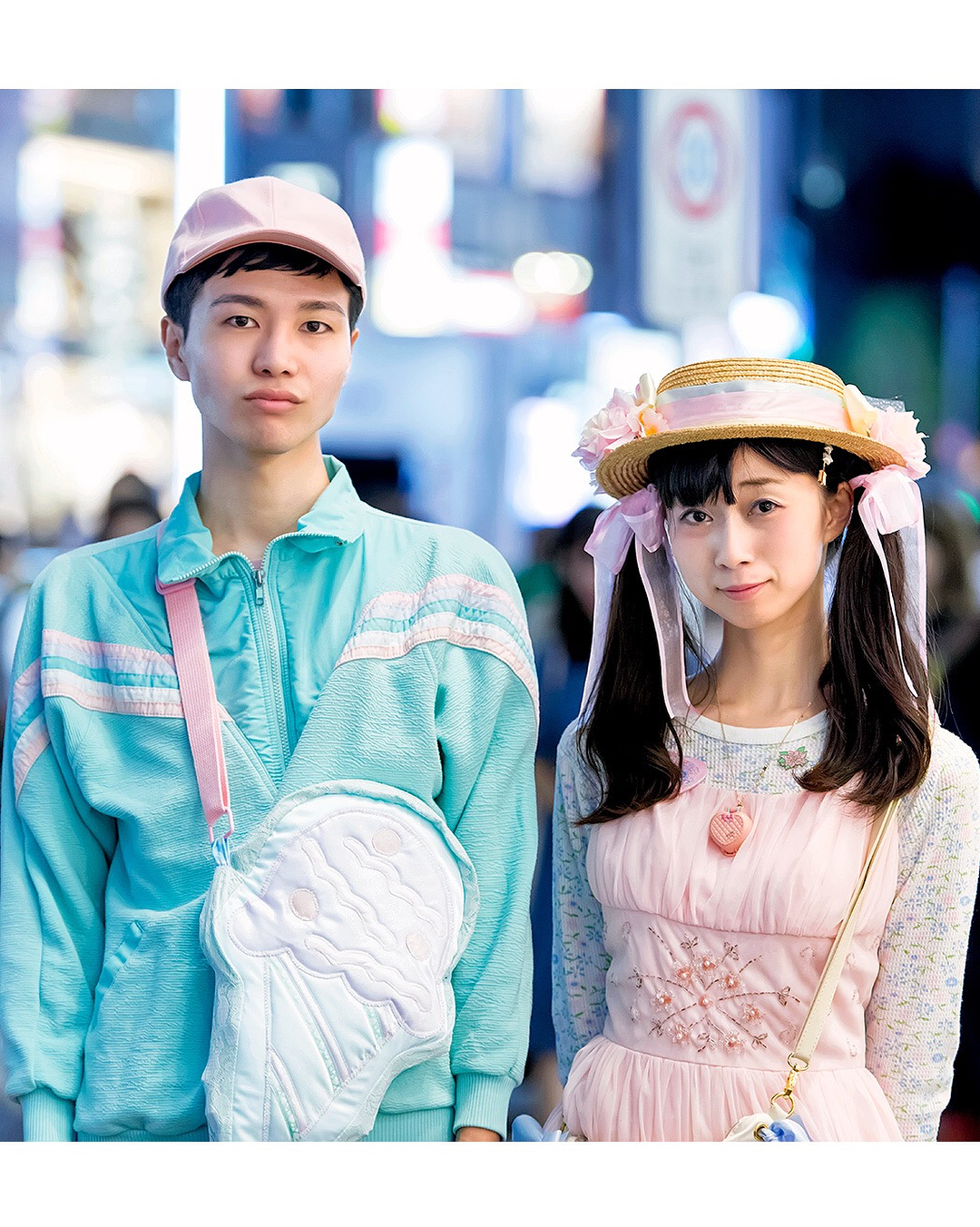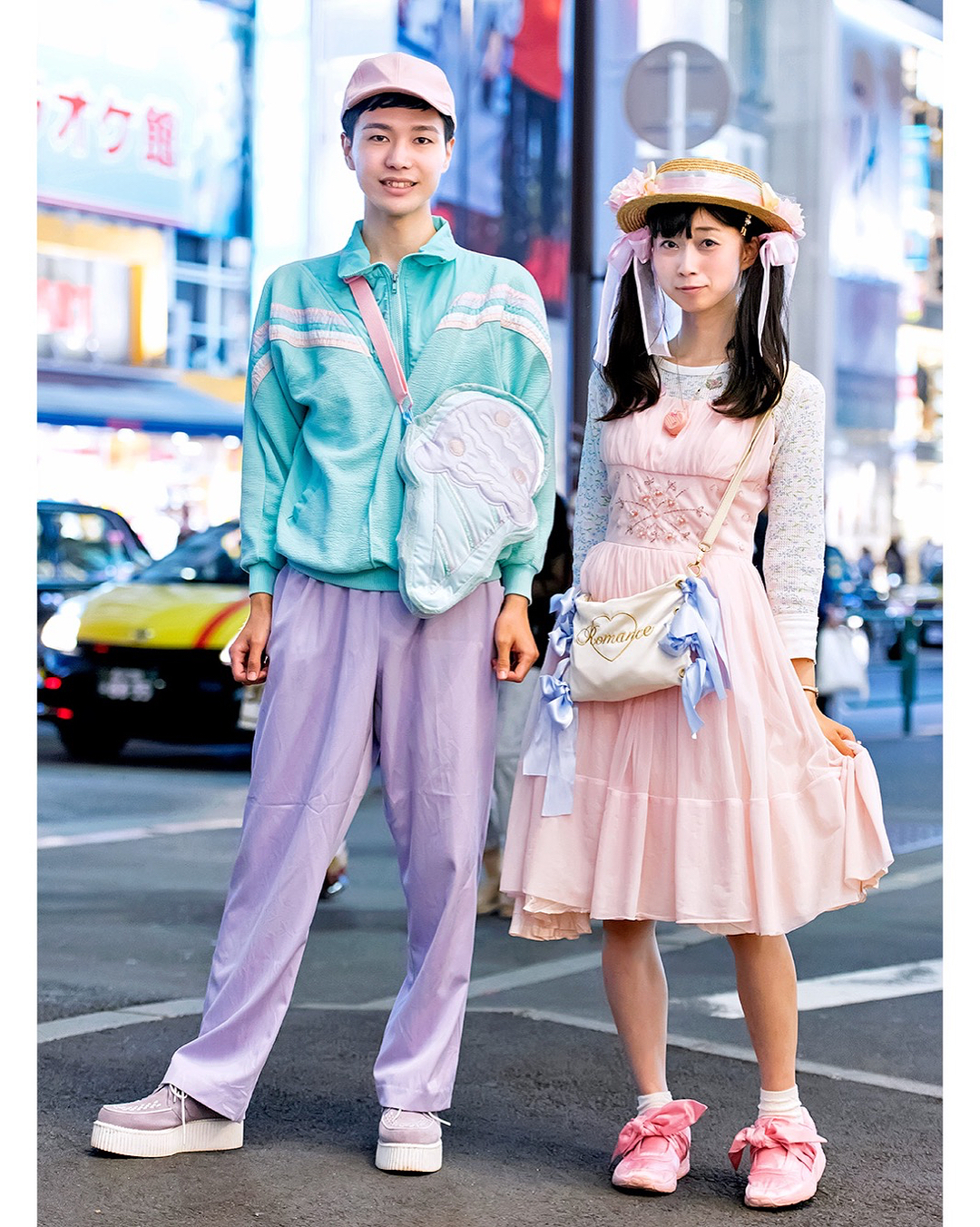 Japanese designers @Sumomo_Dream and @Dreamy_Rumy on the street in Harajuku wearing pastel fashion including items from Happy Birthday To You, Creamy Ice, Grimoire Almadel, Kiki, Swimmer, Dream Land, Polly Pocket, and Junk Show.