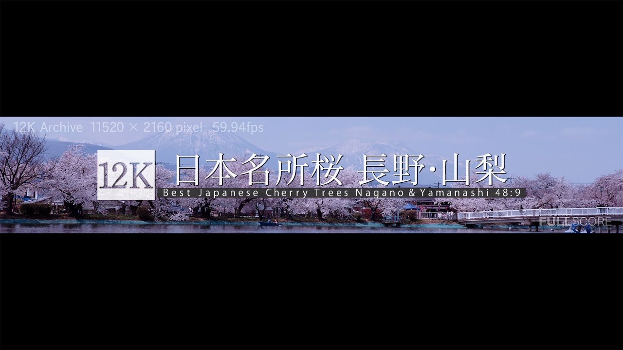 山梨県韮崎市のわに塚の桜です。12Kワイド、アスペクト比48 :9です。