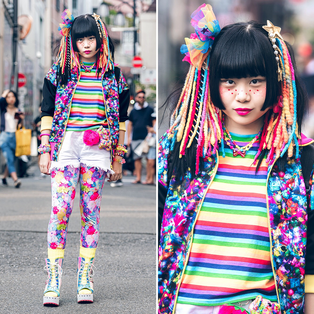 21-year-old Japanese art school student Chami (@chami8725) on the street in Harajuku wearing kawaii fashion and cyber hair falls with items from 6%DOKIDOKI, WC Harajuku, Yosuke, and Claire’s. Chami describes herself as a “Harajuku Colorful Girl”!