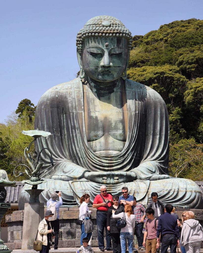 Tourists take photos of the Great Buddha in Kamakura, Kanagawa Prefecture, on April 16. The statue is estimated to date back to the 13th century. (Satoko Kawasaki photo) #Japan #travel #Kamakura #鎌倉 #高徳院