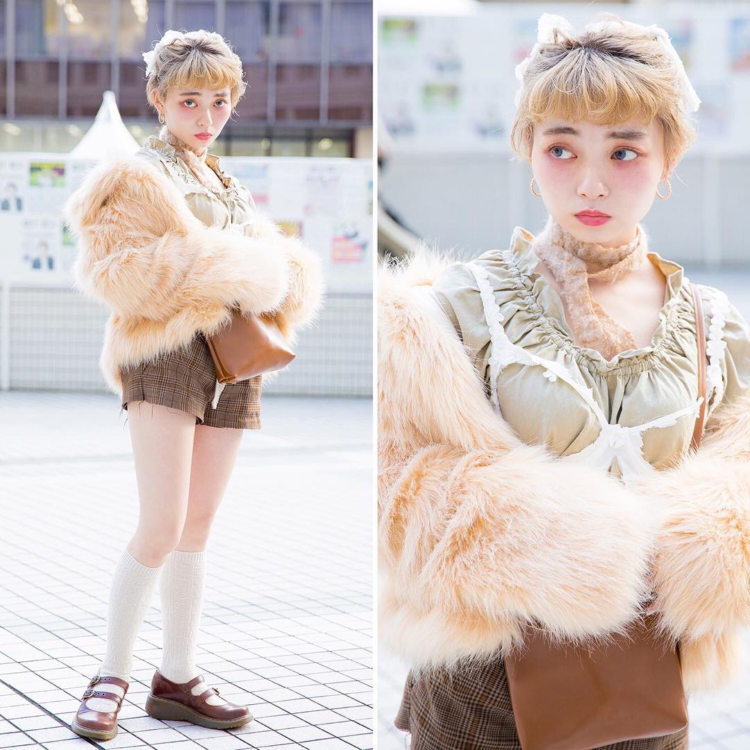 @Tokyo Fashion: 20-year-old Eartha (@roseartha) on the street in Tokyo wearing a faux fur coat o…
