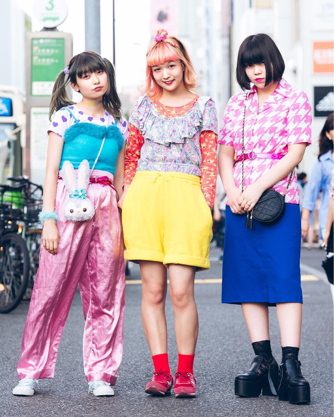 @Tokyo Fashion: @Emiry21, @Rimaririgram, and @Sm_xolll on the street in Harajuku wearing color…