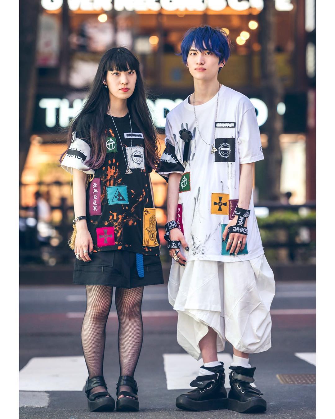 @Tokyo Fashion: Harajuku couple Saho and Ryota (@_jumeaux) on the street w/ handmade patched shi…