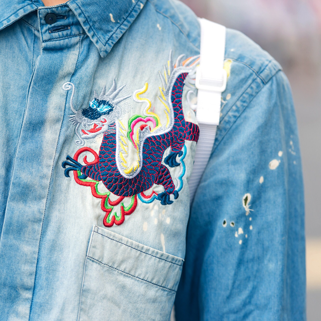 @Tokyo Fashion: 19-year-old @ManayaTsunoda on the street in Harajuku wearing a dragon embroidery…