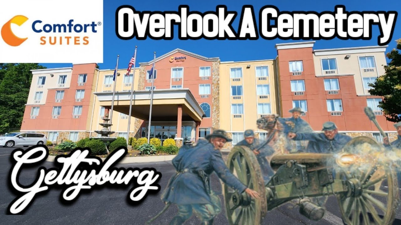 Join us at Gettysburg Pa to show you the Comfort Suites with the most unusual view from a hotel you will see. The Comfort Suites overlooks the Evergreen Cemetery. So wake up in the morning and look out over this historic Cemetery. So let’s go look around the Comfort Suites in Gettysburg Pa.