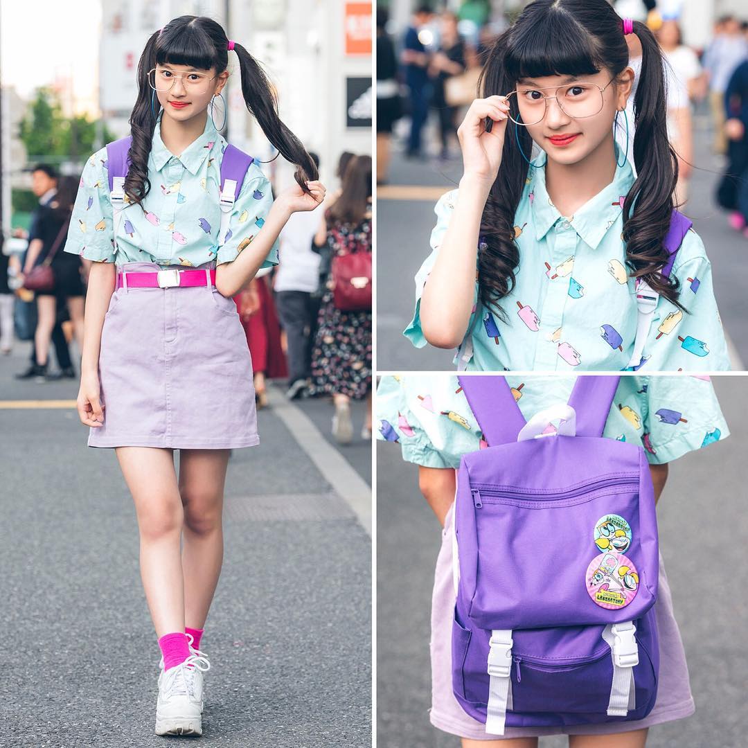 @Tokyo Fashion: 13-year-old A-Pon (@a_ponnnn) on the street in Harajuku wearing a pastel look wi…