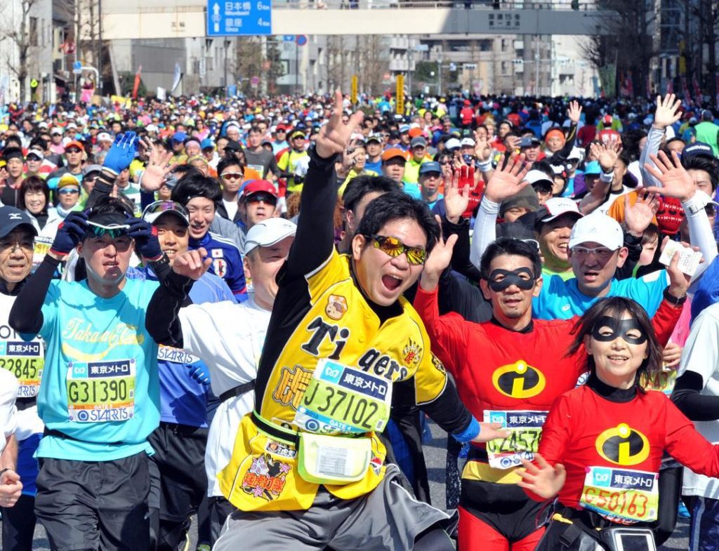 The annual Tokyo Marathon brings in almost 40,000 runners from all over Japan and the rest of the world. As always there was no shortage of superheroes, cartoon characters and cross-dressers. All in all, it was a great day at the wacky races.(Yoshiaki Miura photo) #Tokyo Marathon #東京マラソン