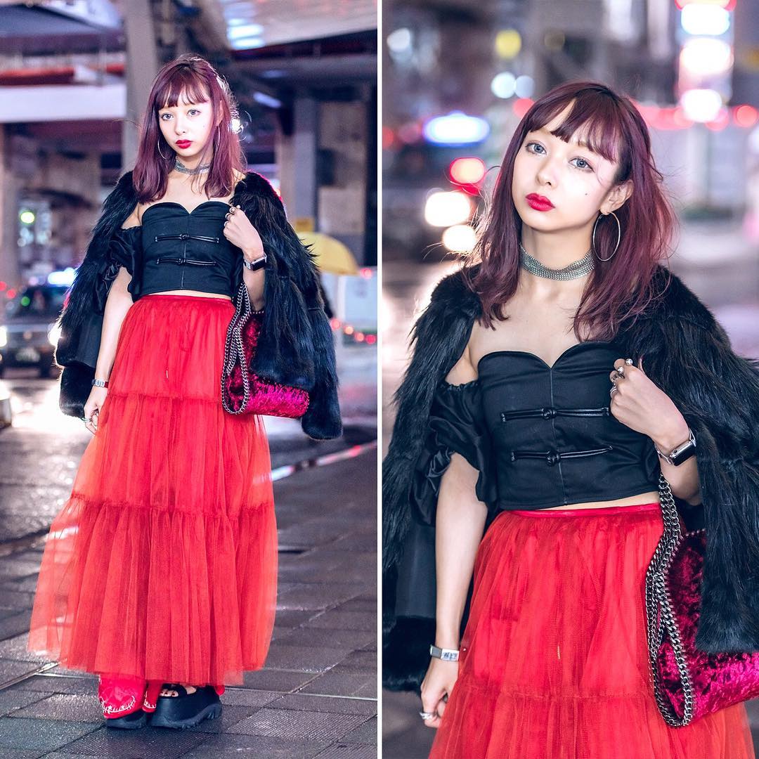 Monaca Nishi (@monacaaaaa1230), the designer/producer of the Japanese fashion brand Fiction Tokyo (@fiction_tokyo_official), on the street in Shibuya. Tokyo FashionAloJapan.com