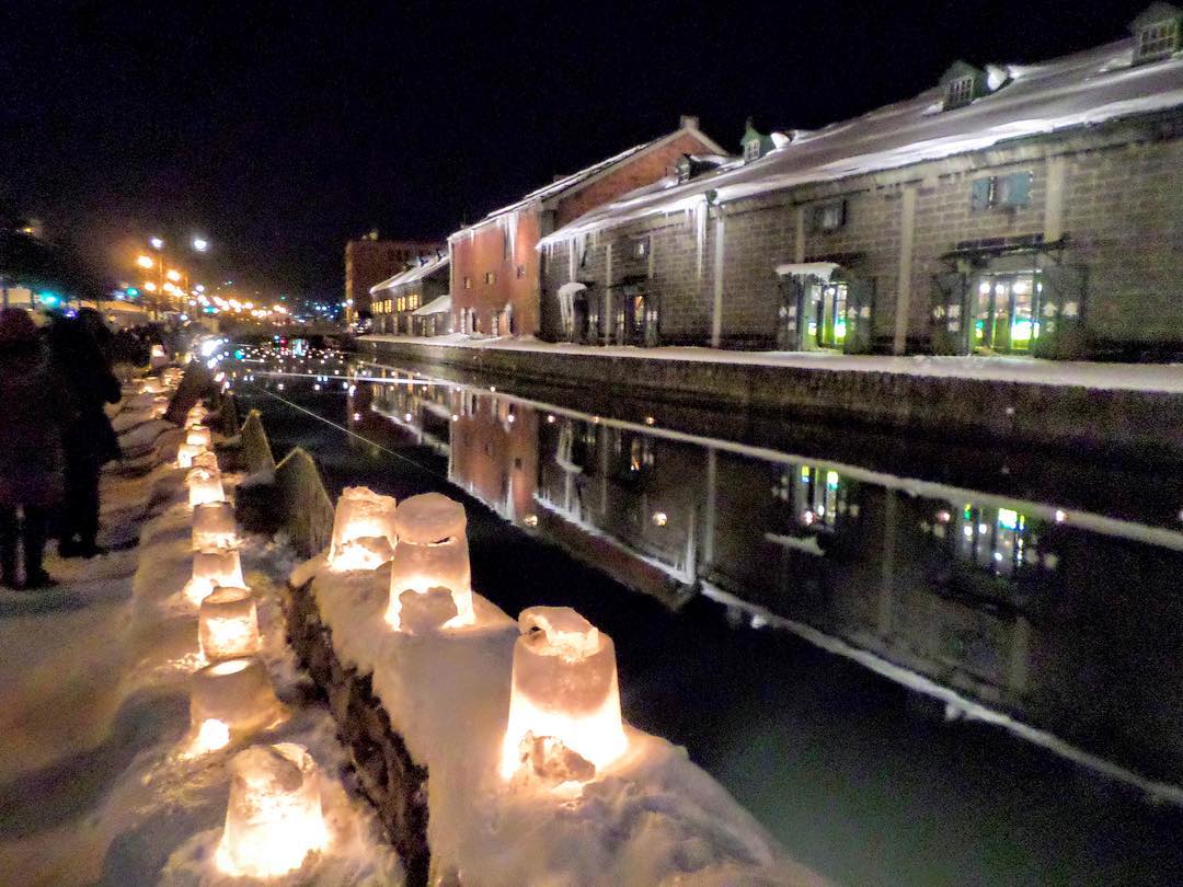 The Otaru Snow Light Path Festival is held every year in early February during the Sapporo Snow Festival. The town is lit up with candles placed in small snow sculptures. (Tom Hanaway photo) #snow #Otaru #Japan #小樽 #小樽雪あかりの路