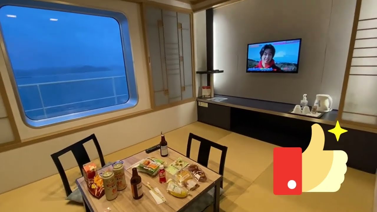🏮Please Subscribe ⛩️ Ride the Hankyu Overnight Ferry from Kyushu to Kobe… Tour the boat and stay in the Japanese room with tatami and futon. My favorite part is the open air bath on the top deck, open to 10pm.