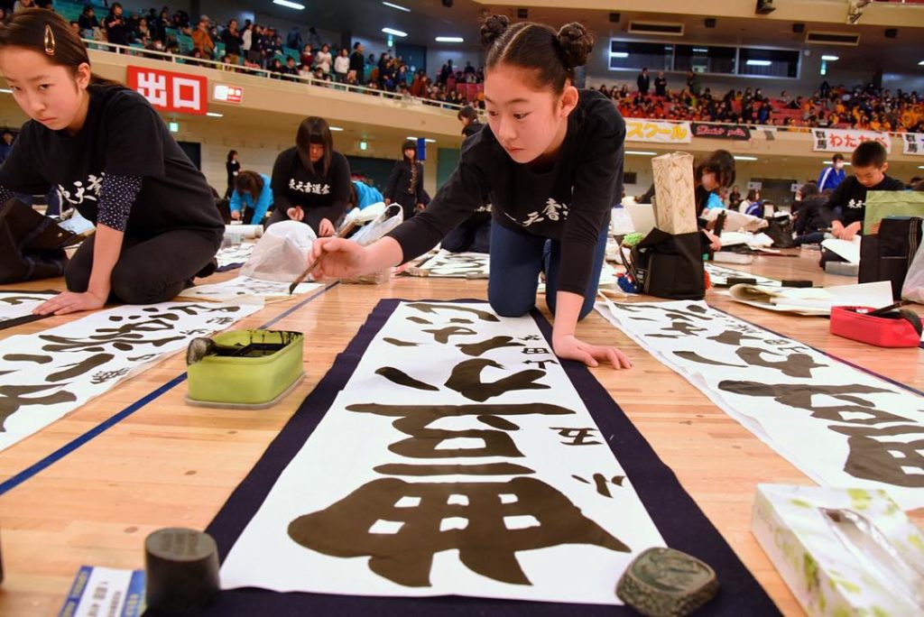 On Jan. 17, awards will be handed out to the best pieces created at Nippon Budokan Hall’s calligraphy contest. (Satoko Kawasaki) #書道 #shodo #Tokyo #Japan