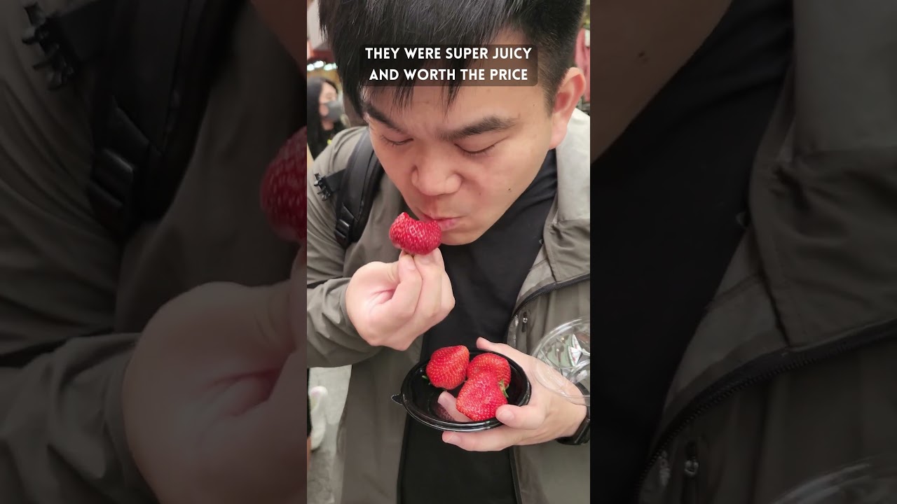 This is everything that we ate in Kuromon Market! We ordered the Egg with Unagi at Osaka Maiman Sushi, bought the strawberries at Daiwa Kaen and lastly we ate the soft wagyu beef at Manno! Must try! #tamago #unagi #kuromon #market #osaka #japan #osakamaimansushi #wagyubeef #strawberries #ichigo