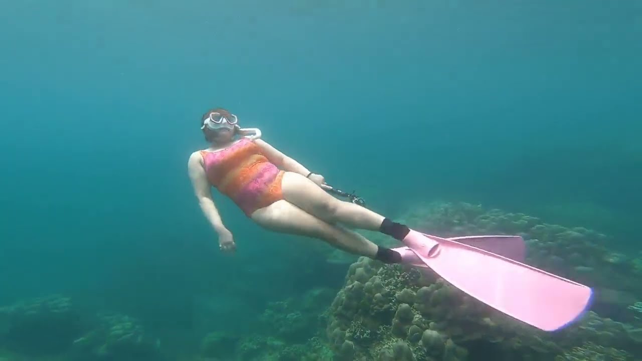 0:20:39 mayotte swimming in direction of a coral looking like a plate