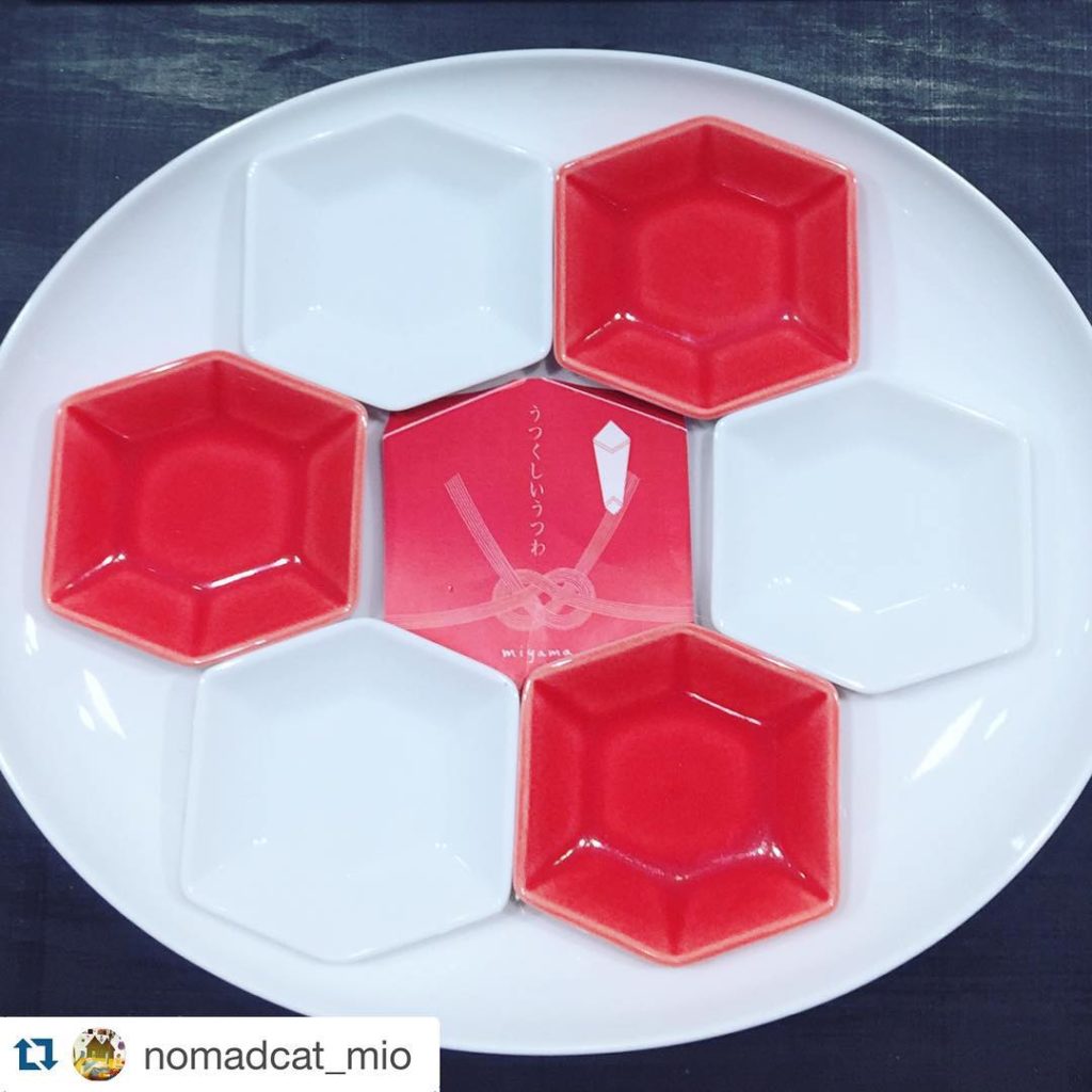 The new Mizuhiki by Miyama ceramics. Interlocking hexagons, in traditional red and white. Colors and shapes of the Muromachi Era. Mizuhiki also refers to the art of creating decorations from manipulating and tying stiffened rice-paper cord. #japanesedesign #ifft #interiorlifestyleliving #design