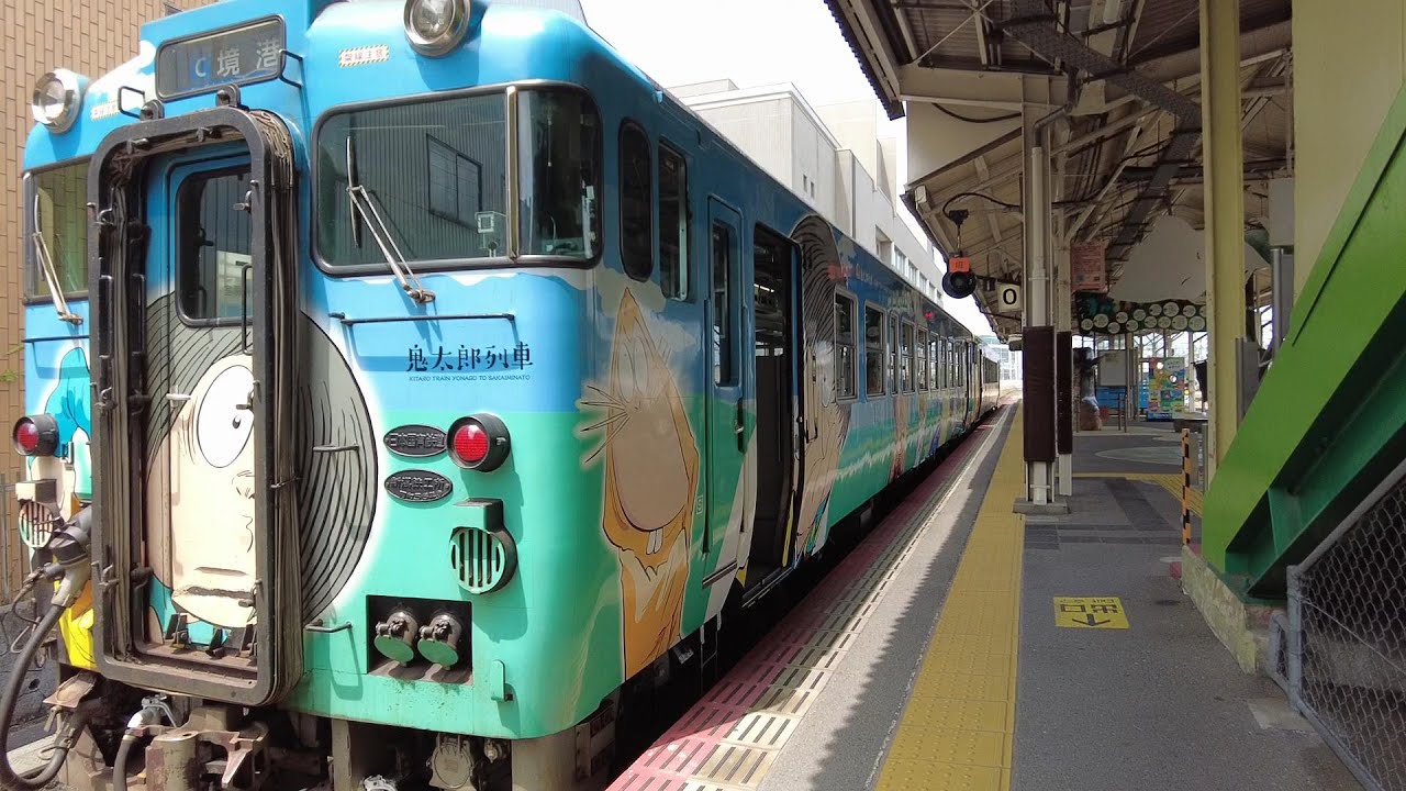 The Kitaro Train operates on the JR Sakai Line between Yonago Station and Sakaiminato Station. 4 types of trains are currently in operation in rotation: the “Kitaro Train” in August 2000, the “New Kitaro Train” in November 2005, the “Nezumi Otoko Train” in February 2006, and the “Neko Musume Train” in July 2006. Currently, four types of trains are in operation in rotation. The cute Kitaro family is depicted not only on the exterior but also on the inside of the trains, making them very popular among children. On the day I visited, many children were on a field trip.