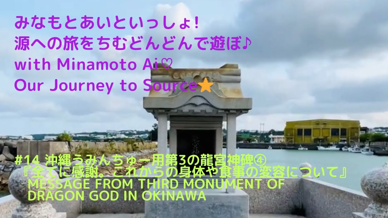 Hi, there! Thank you SO much for watching my 14th episode of “With Minamoto Ai~Our Journey to Source.” This time, I am introducing the real third monument of Dragon god for Fishermen on Ishikawa Beach in Okinawa, Japan! I got a message from Dragon god with Light Language. Because my body has been changing to Ascension body now, I was not able to put subtile this time. In short, this Dragon God told us, “Are you always thankful everything? To eat food, you have many process through fishermen, farmers, buyers, sellers, transporter, shopper of food, cook and etc…”