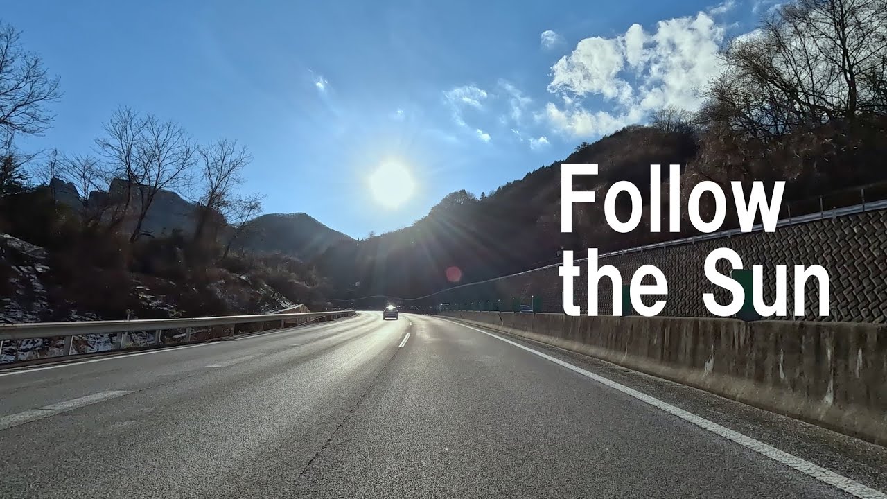 青い冬の陽光が眩しい中、横川SA(サービスエリア)スタート、長野市ターンオフでゴールする4Kタイムワープドライブ。