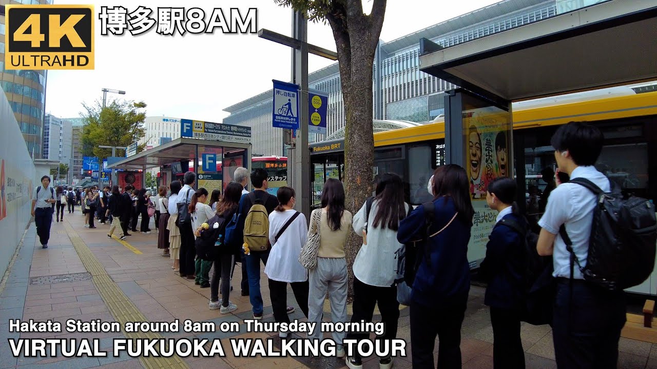 博多駅(平日朝8時)を歩く4k virtual Fukuoka japan walking tour around Hakata station