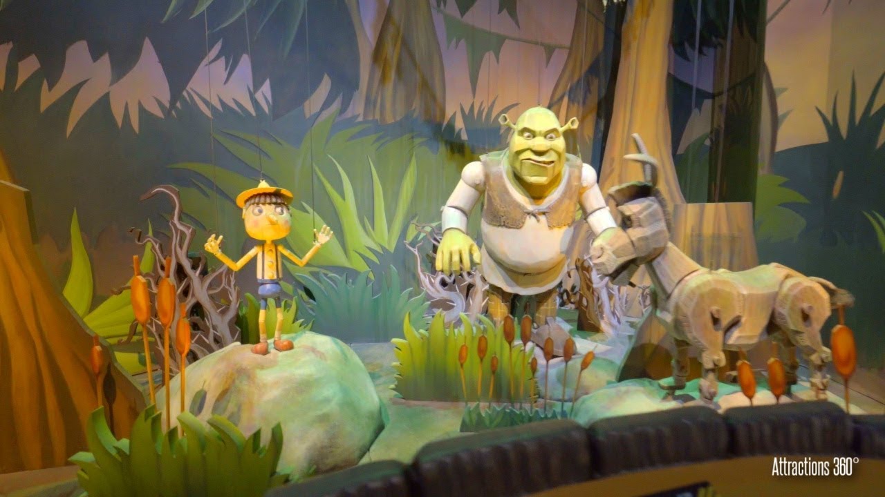 1. Note: This ride is a storytelling with animatronic puppets of how Shrek & Fiona met. Hence why the animatronics throughout the ride looks like puppets.