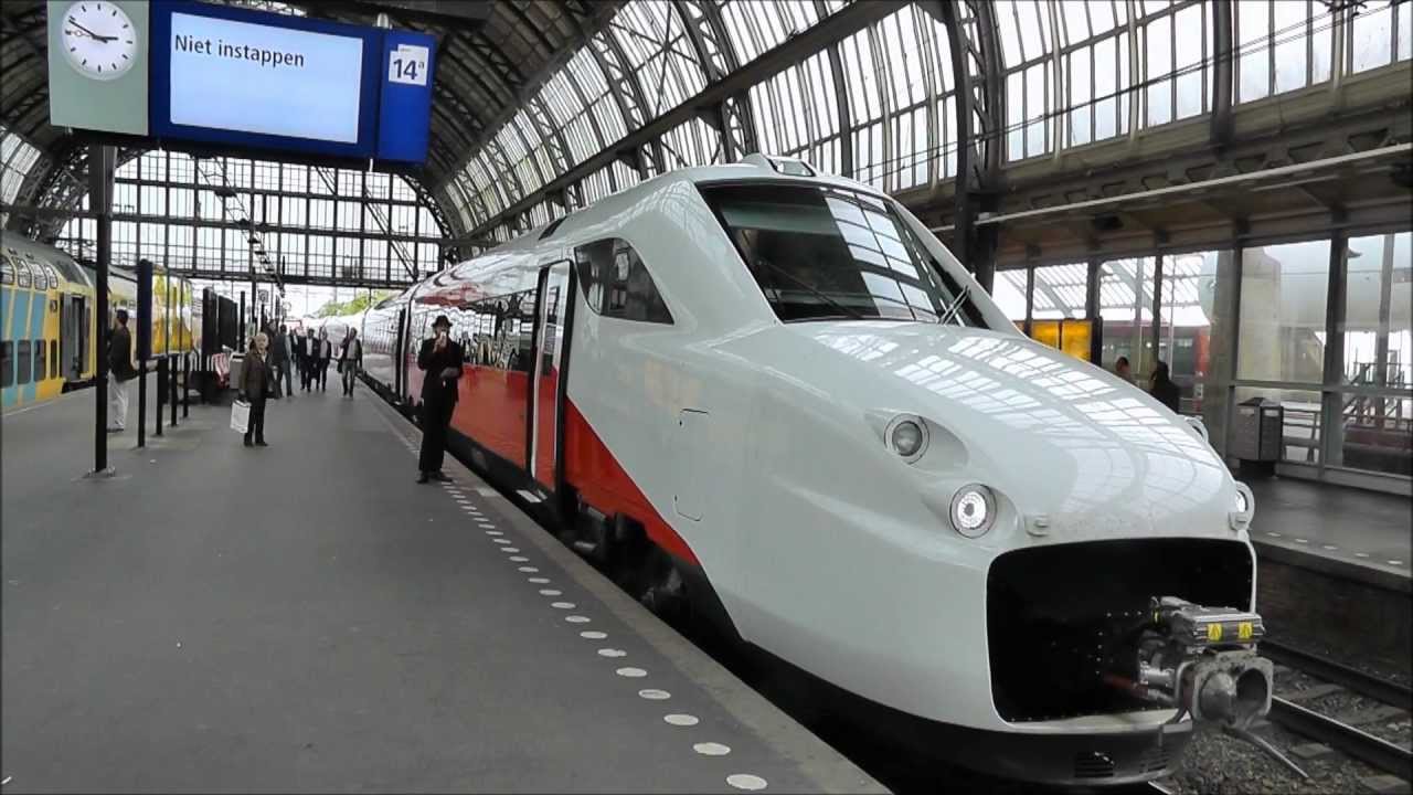 A memory of the 250 km/h FYRA train that was to have linked Brussels, Antwerp, Rotterdam and Amsterdam every hour throughout the day from 9 December 2012. Unfortunately, Fyra proved something of a fiasco. The train was unreliable in the snow and the service was stopped in January 2013, with the Belgian refusing to let it run in Belgium until all problems were resolved. As yet there is no date set for its reinstatement.
